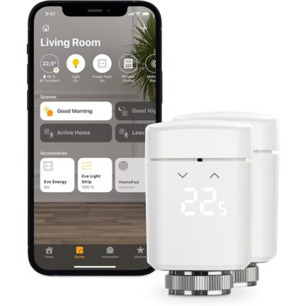 Eve Thermo 10EBP1701-2X Válvula Termostática Inteligente LED para Radiador – Pack de 2 unidades