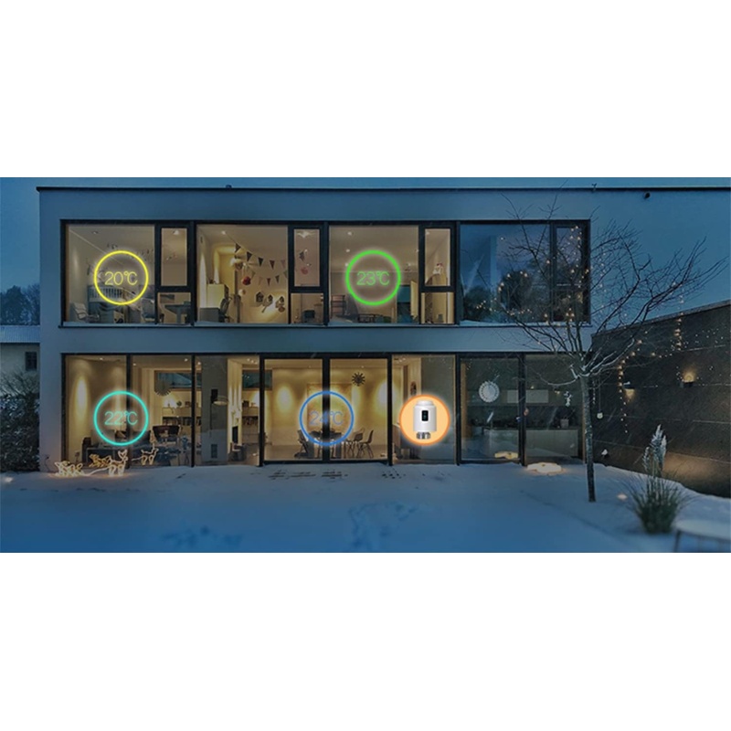 La válvula termostática inteligente programable Qiumi RM604TRV-04PACK está diseñada para el control de temperatura en sistemas de calefacción. Este pack incluye cuatro unidades independientes que pueden ser instaladas en radiadores. Cada válvula cuenta con conectividad WiFi, lo que permite el control a distancia a través de una aplicación móvil compatible. La instalación es sencilla y no requiere modificaciones en la infraestructura existente de calefacción. Las válvulas son compatibles con los principales sistemas de calefacción, como calderas y bombas de calor. El rango de temperatura ajustable va de 5 °C a 35 °C, y se puede programar diversas configuraciones horarias para adaptarse a diferentes necesidades. Además, la función de control por voz permite integrarse con dispositivos de asistentes de voz comunes. La duración de la batería integrada es de aproximadamente dos años, y se puede cargar mediante un puerto micro USB. La comunicación entre la válvula y la aplicación se realiza a través de una red WiFi estándar, permitiendo un monitoreo en tiempo real. Las unidades son sólidas y están construidas con materiales que garantizan su funcionamiento adecuado en entornos domésticos. Este producto se destina a usuarios que buscan una opción para regular la calefacción de forma precisa.