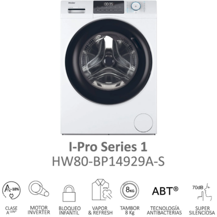Haier Lavadora de Carga Frontal HW80-BP1439N-IB 8 1400 kg rpm